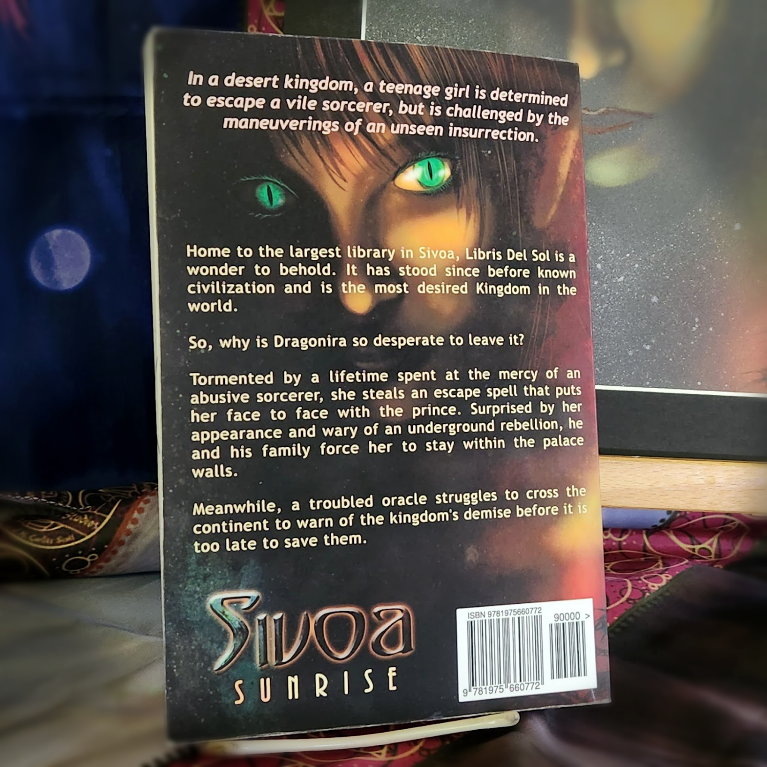This is the cover to my award-winning novel, Sivoa: Sunrise. The hand-embellished print (pictured) for it featured in 2016's "The Narrative Image", an art exhibit focused on storytelling, Orlando, FL.The novel itself is about a teenage girl determined to escape a vile sorcerer, but is challenged by the maneuverings of an unseen insurrection.