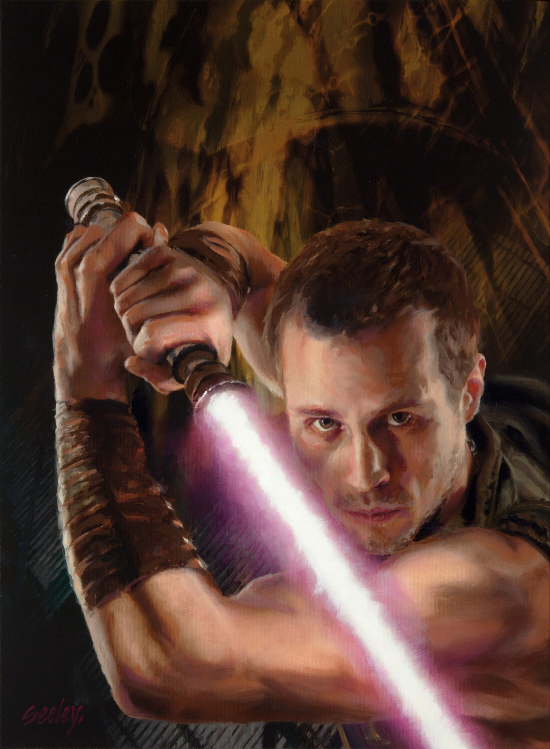 This was the first cover I did for the Del Rey Lucasfilm novel Star Wars - Riptide, featuring the character Jaden Korr. The cover was finished and approved, but after it was shown on StarWars.com's first look, Del Rey recommissioned a different, and ultimately published, version. My art director and I both preferred this version. THIS version was published in my art monograph, The Art of Dave Seeley.