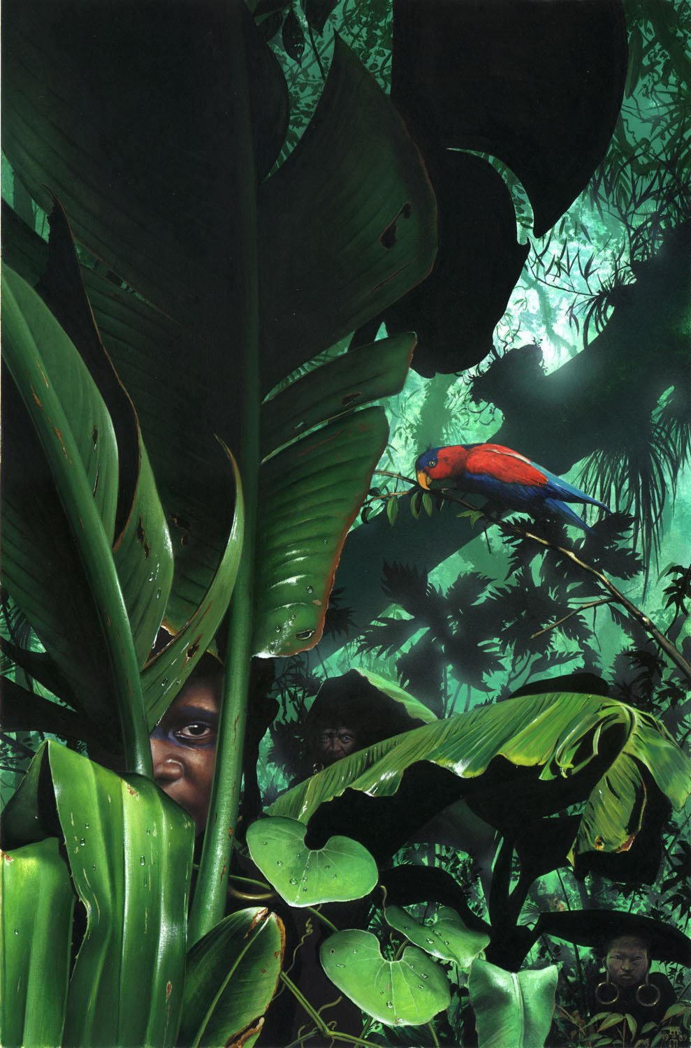 10 x 15.5 inches, acrylic on board. 1989. Sphere Books for the Eric Hansen novel.