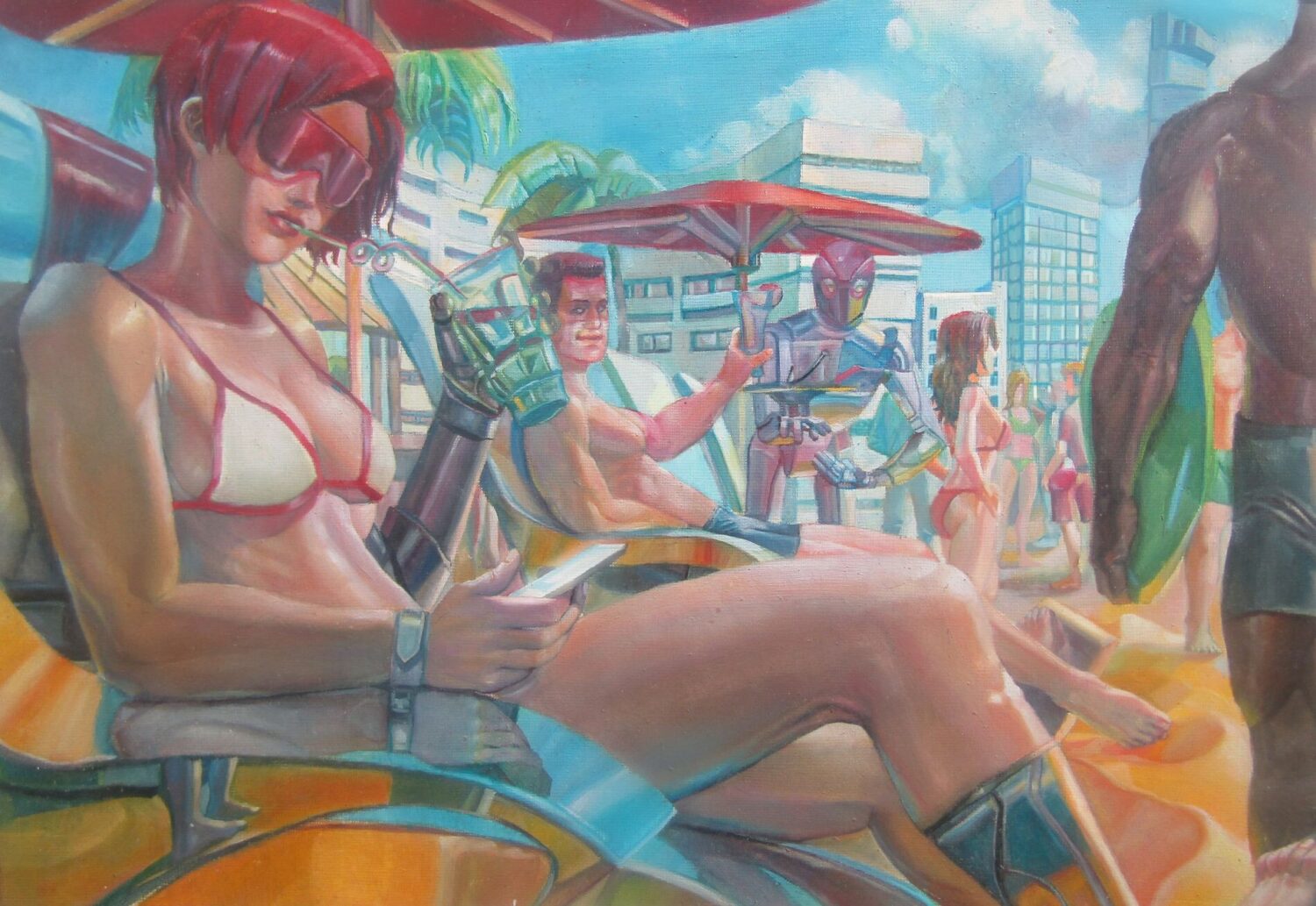 Summer of 2070. Painted with oil paint on 12 x 16' acrylic paper.