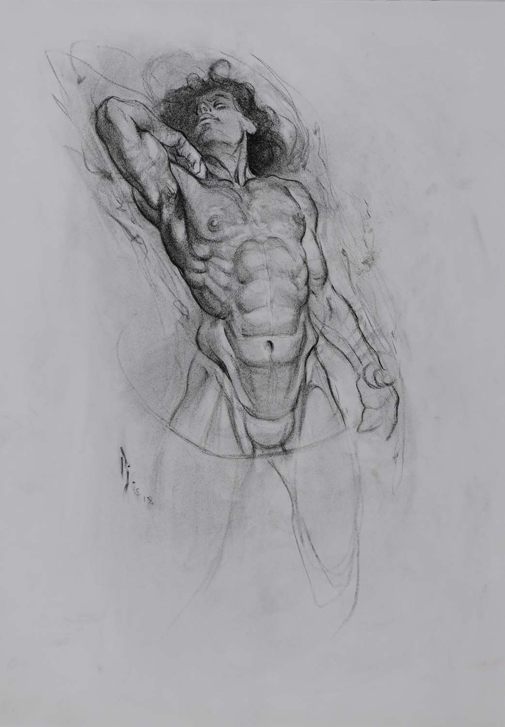 11.69 x 16.53 inches (A3 size), charcoal pencil on archival paper. 2018.