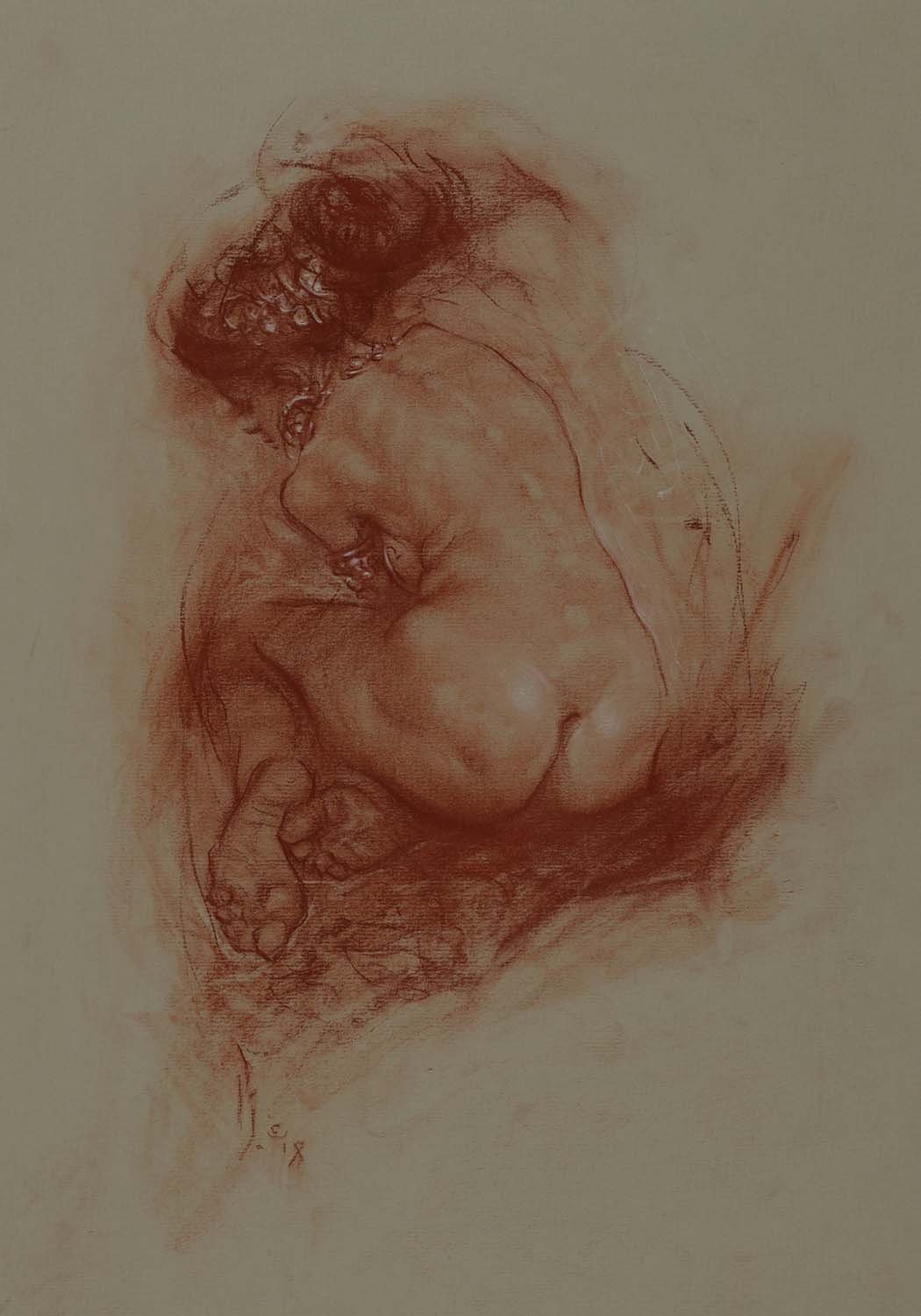 11.69 x 16.53 inches (A3 size), sanguine on toned archival paper. 2018.