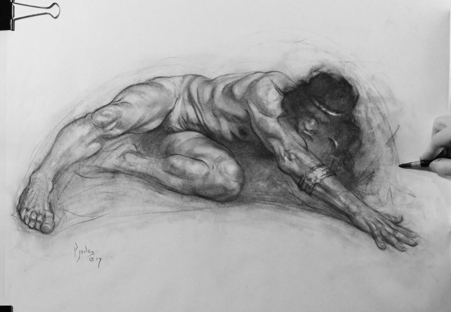 From the book Figures from Life: Charcoal Pencil on Large Newsprint: 23.6” x 18.4” NOTE: Although newsprint is not considered archival, with care samples have proven to last for hundreds of years, and today's UV glass options render superior protection for non-archival papers. Please be aware though that the paper WILL tan with direct exposure to light. This can add charm to the original drawing as it does to old newspapers and pulp drawings, but it is recommended that you use UV glass/museum glass when framing if you wish to maintain the original paper color. Although the Newsprint drawings are impressively large, they are sold here at lower prices than the archival paper drawings for this reason.