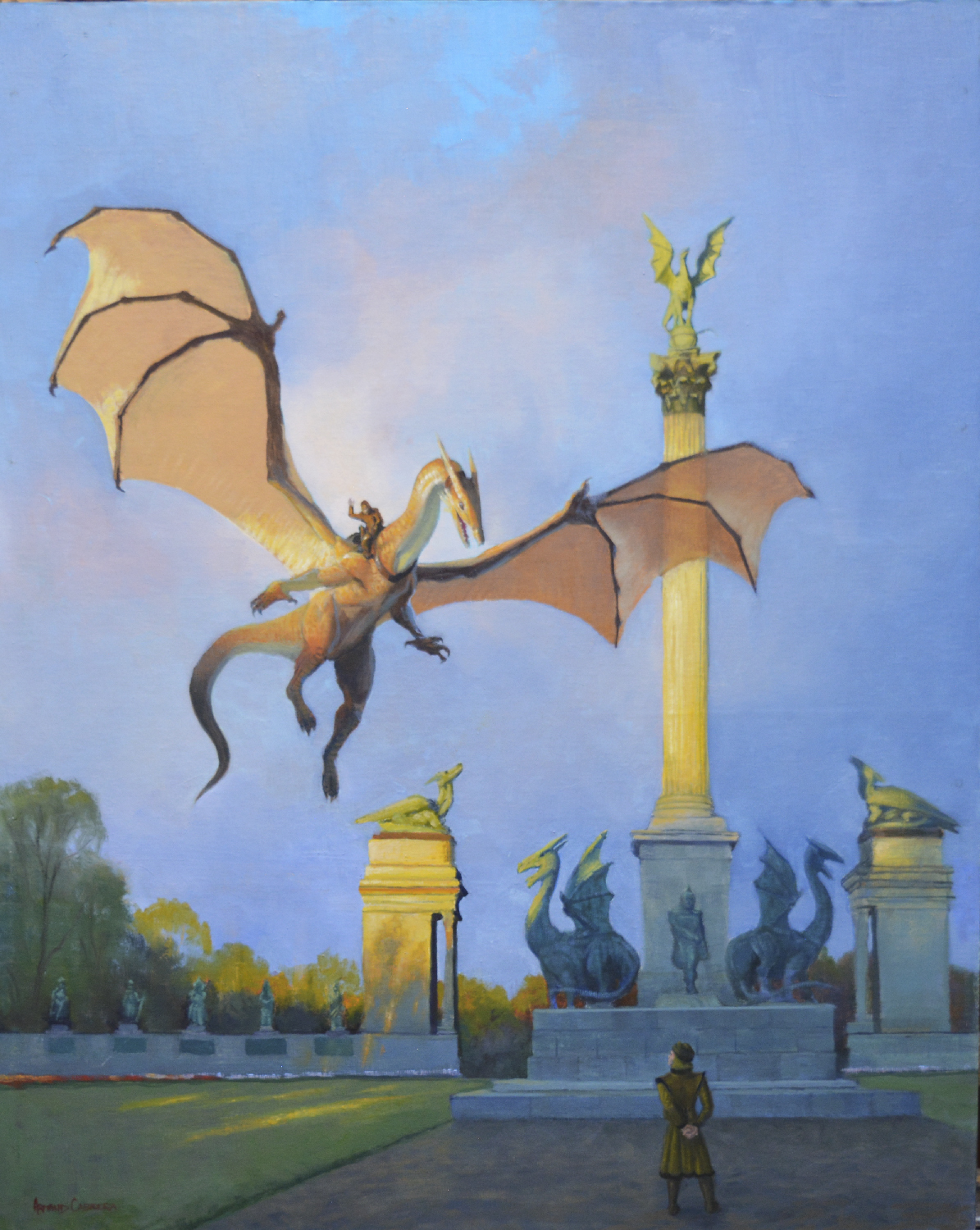 Unframed. A dragon rider delivering news from afar. This is another scene that was based on outdoor sketches capturing evening and its lighting effects.