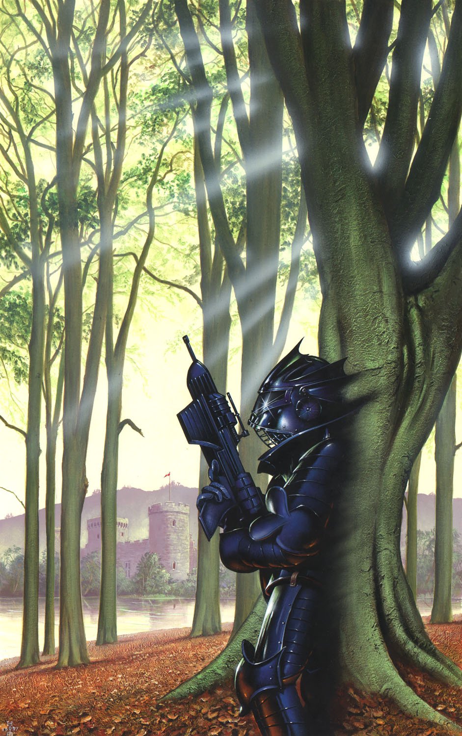 10 x 15.5 inches, acrylic on board. 1987. Headline Books for the Simon Hawke novel.