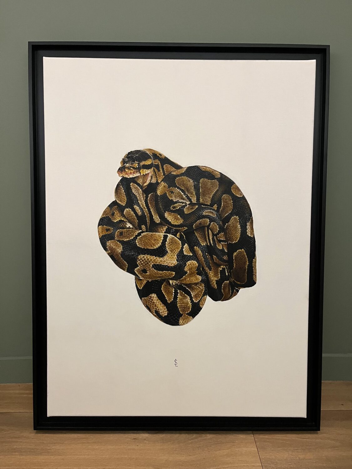 The ouroboros is a symbol used in ancient traditions that represents a snake eating its own tail. Referring to the eternal repetition of cycles of creation and destruction it symbolises eternity and the soul of the world. In an era plagued with uncertainty like ours my knotted ouroboros is curling up on itself in pain and contraction just like the the world and its course seem to be doing.