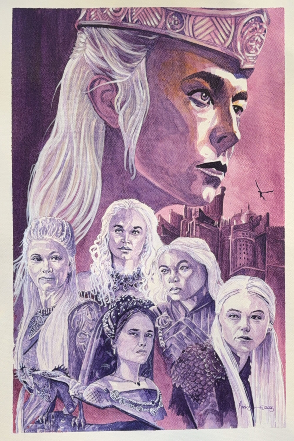 This is my tribute to the woman of this series and their characters. done in PURPLE gouache to signify their royal status.