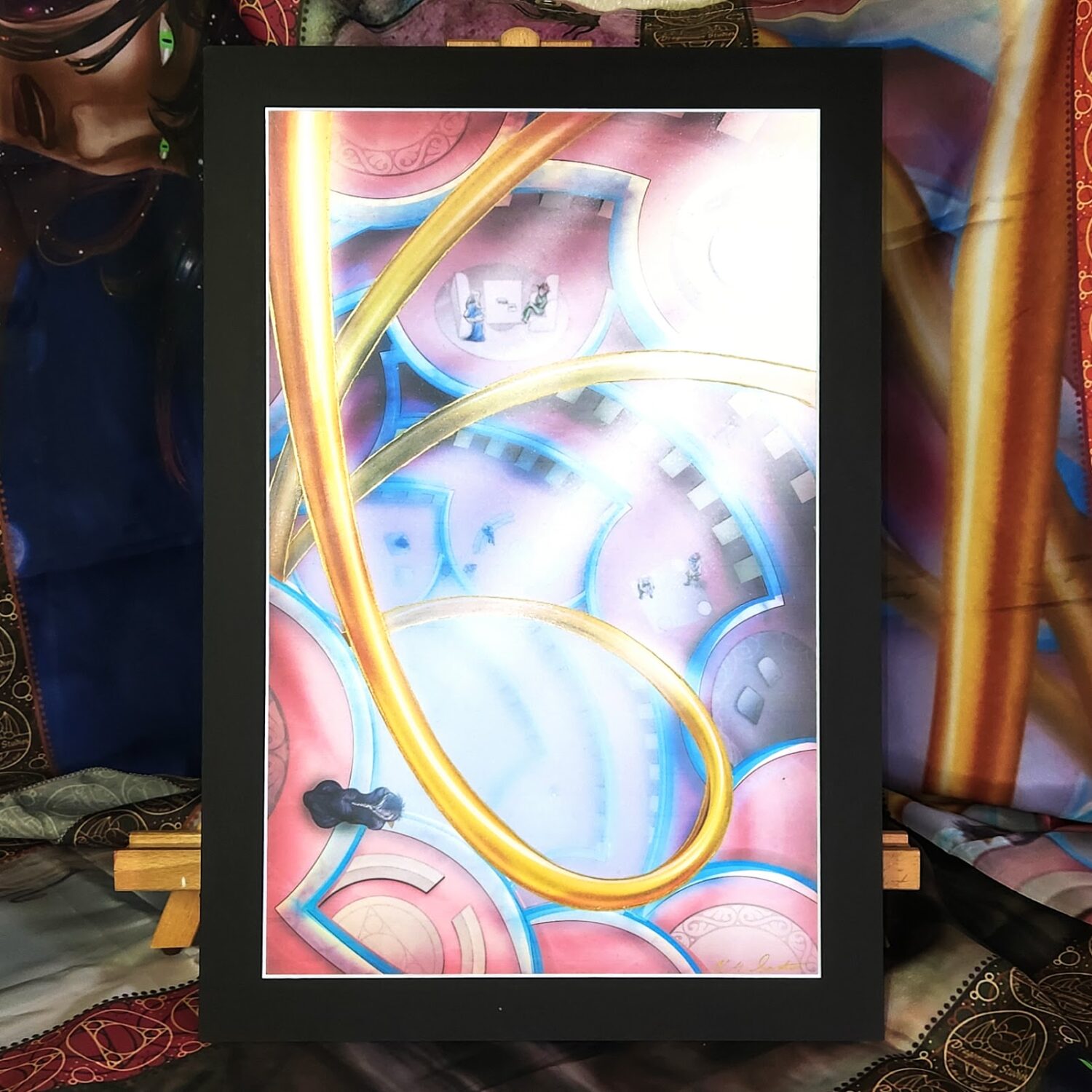 Each level was a rounded shelf circling the inside of the spire’s outer wall. On these shelves were innumerable sets of bookcases that radiated outward from the spire’s open center. Every floor was dotted with three equidistant and round platforms that jutted out into the void. These balconies were connected from level to level by three golden rails that spiraled upward and out of sight through the center of the tower, but they did not provide a means of travel. In fact, it looked impossible to reach the other floors.