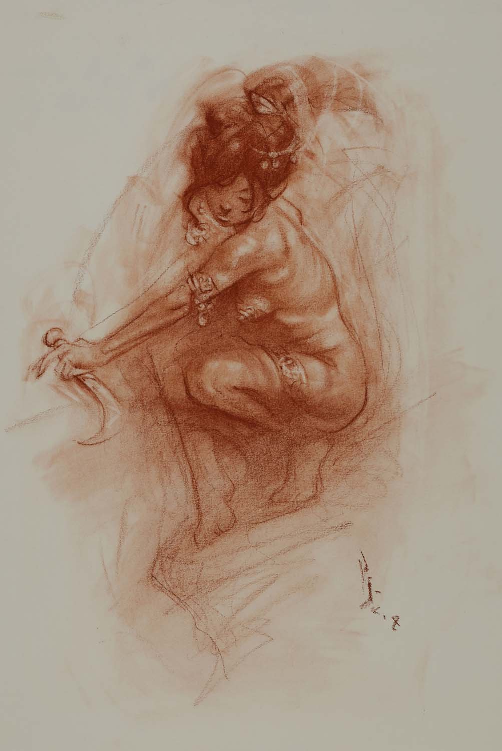 11.69 x 16.53 inches (A3 size), sanguine on toned archival paper. 2018.