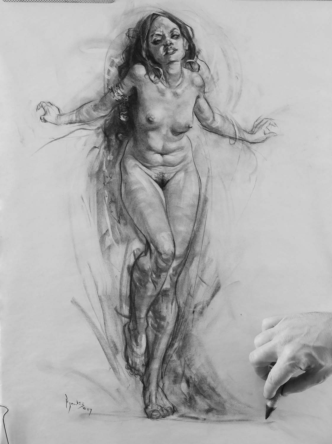 From the 2nd edition book The Anatomy of Style: Charcoal Pencil on Large Newsprint: 23.8” x 16.8” NOTE: Although newsprint is not considered archival, with care samples have proven to last for hundreds of years, and today's UV glass options render superior protection for non-archival papers. Please be aware though that the paper WILL tan with direct exposure to light. This can add charm to the original drawing as it does to old newspapers and pulp drawings, but it is recommended that you use UV glass/museum glass when framing if you wish to maintain the original paper color. Although the Newsprint drawings are impressively large, they are sold here at lower prices than the archival paper drawings for this reason.