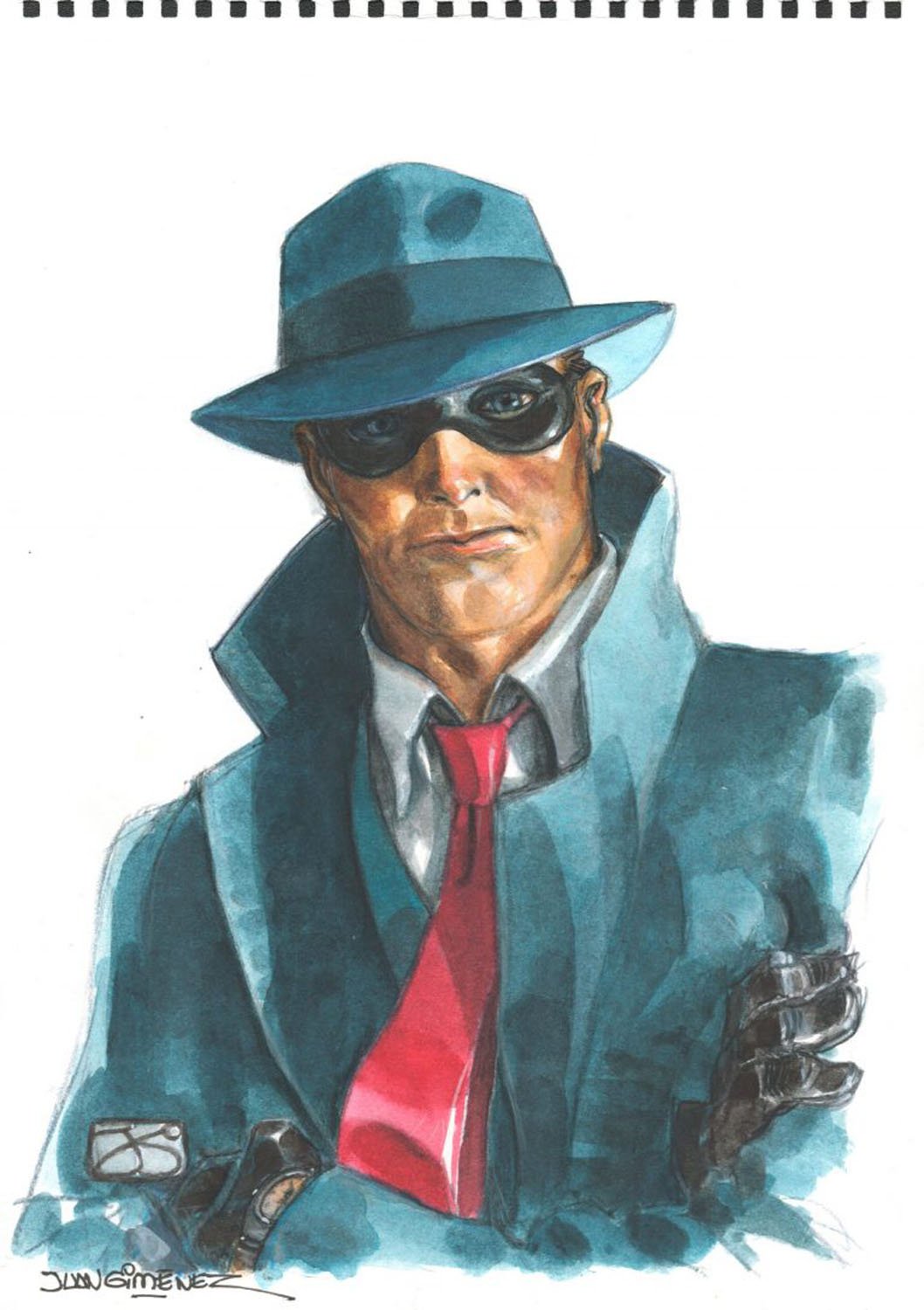12 x 12.9 inches, watercolor and acrylic on paper. Original painting for limited edition prints as a tribute to Will Eisner's character