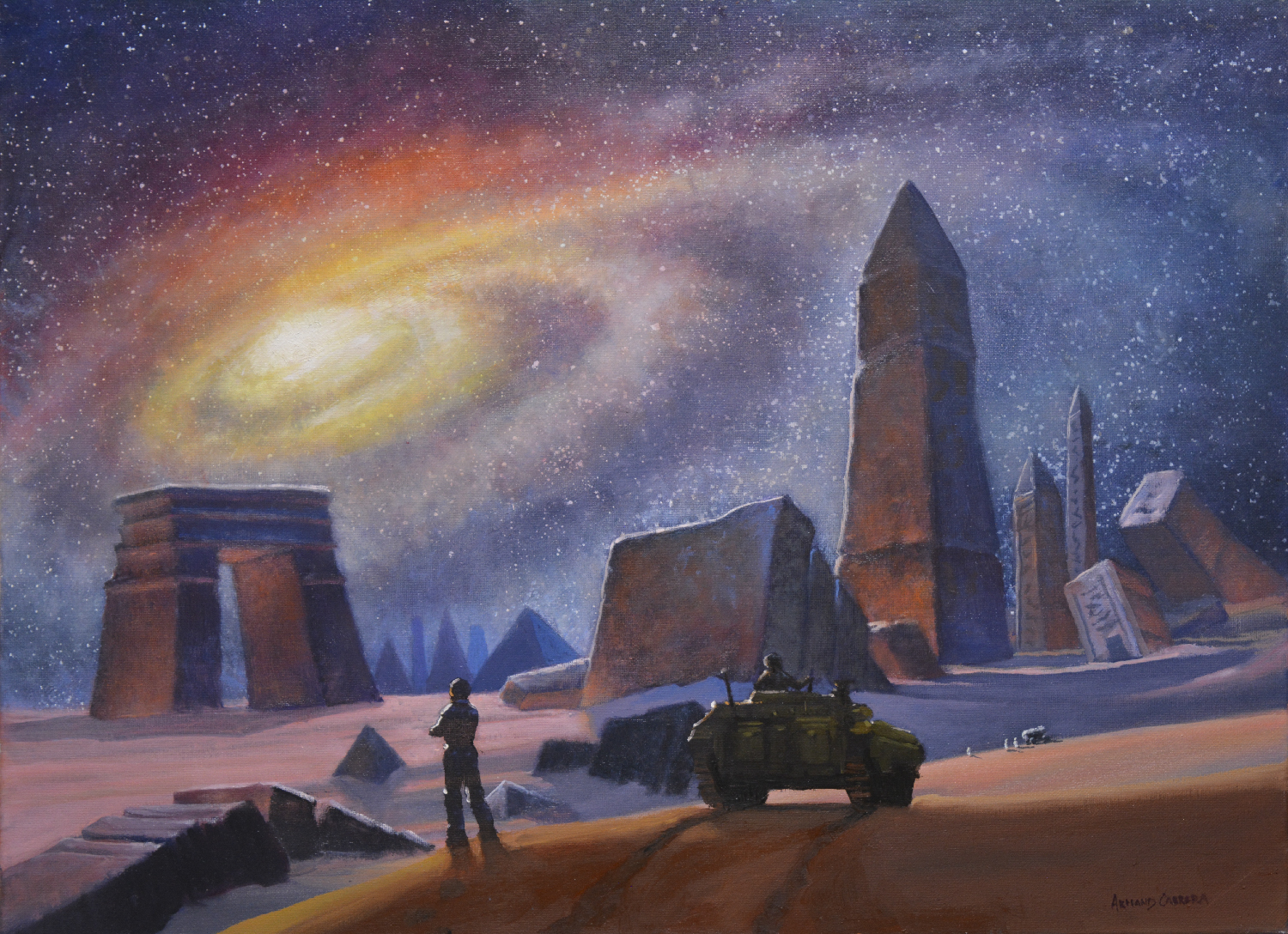 Unframed. On a distant planet, explorers find the colossal remnants of a once thriving civilization.