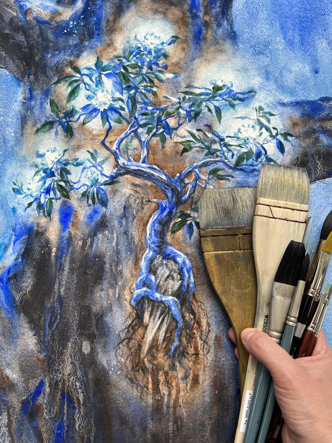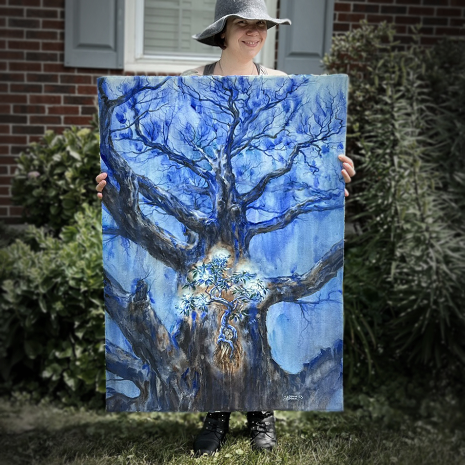 “The White Tree,” watercolor on paper, 29” x 40”, 2023Original artwork, framed.