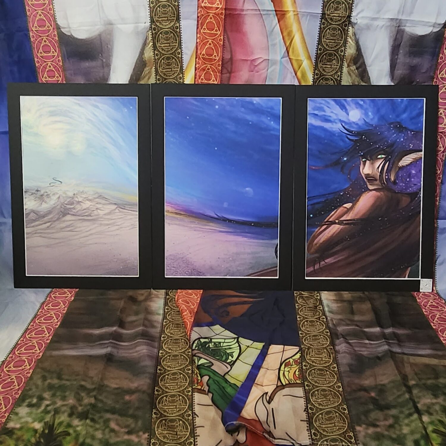 Panoramic/Triptych illustration of the below scene from Sivoa: Sunrise (worldofsivoa.com):The librarian nodded and looked up at the pyramid longingly. “What about all of this? You said that the sorcerer’s daughter did this. Where did she go?”