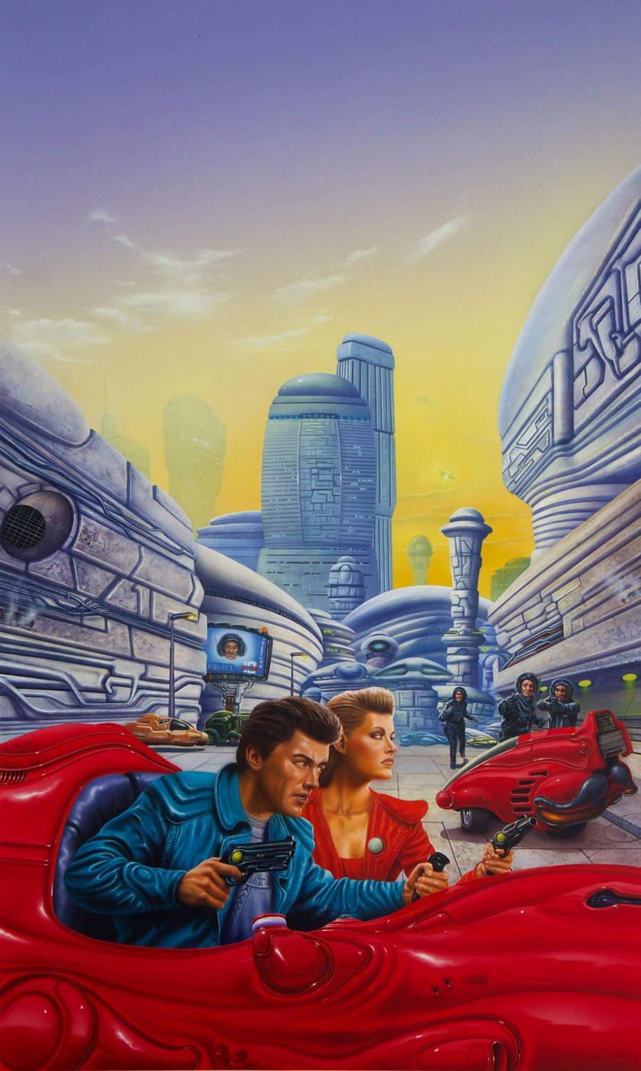 29 x 17 inches, Acrylic on Gessoed illustration board. 1988. Cover for Warren Norwood, published by Byron Preiss.