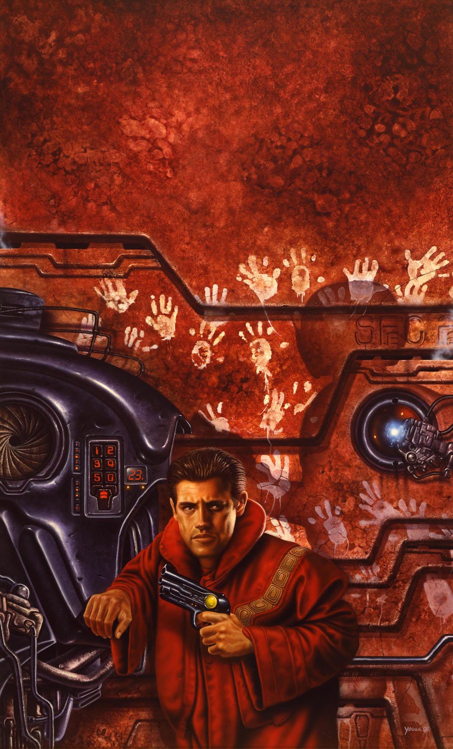 23.15 x 14.5 inches, Acrylic on Gessoed illustration board. 1988. Cover for Warren Norwood, published by Byron Preiss.