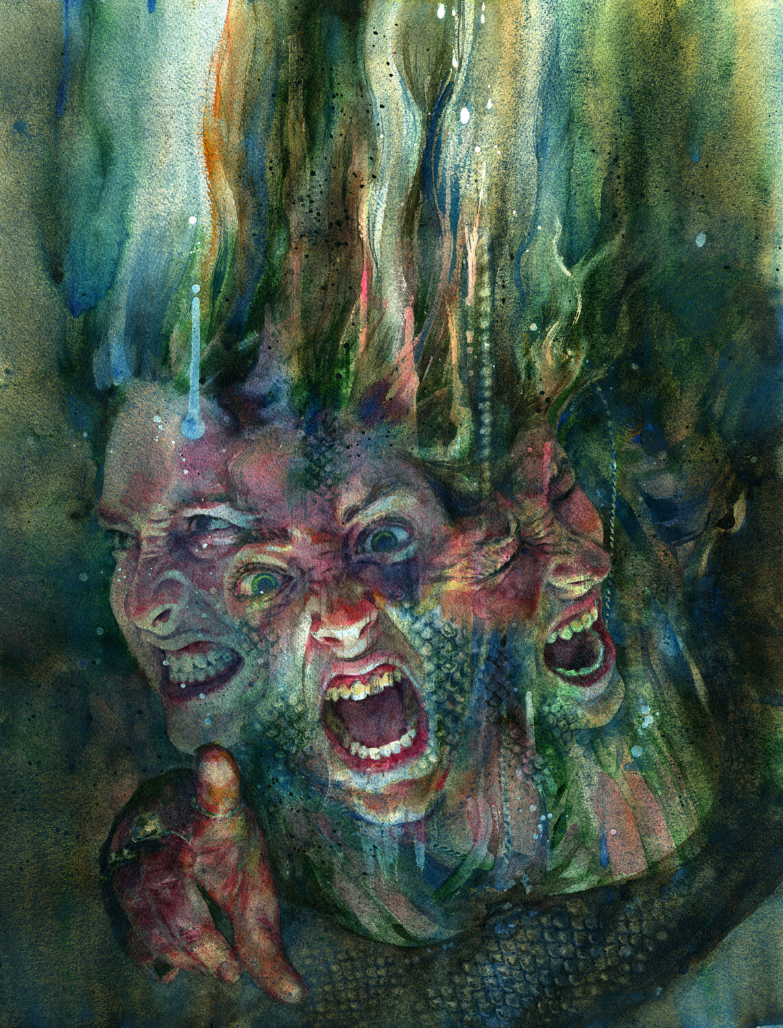 18 x 24 inches, watercolor on paper. 2019. Framed- Antiqued silver wooden frame, airgap spacers (no mat), non-glare standard plexiglass, archival backing