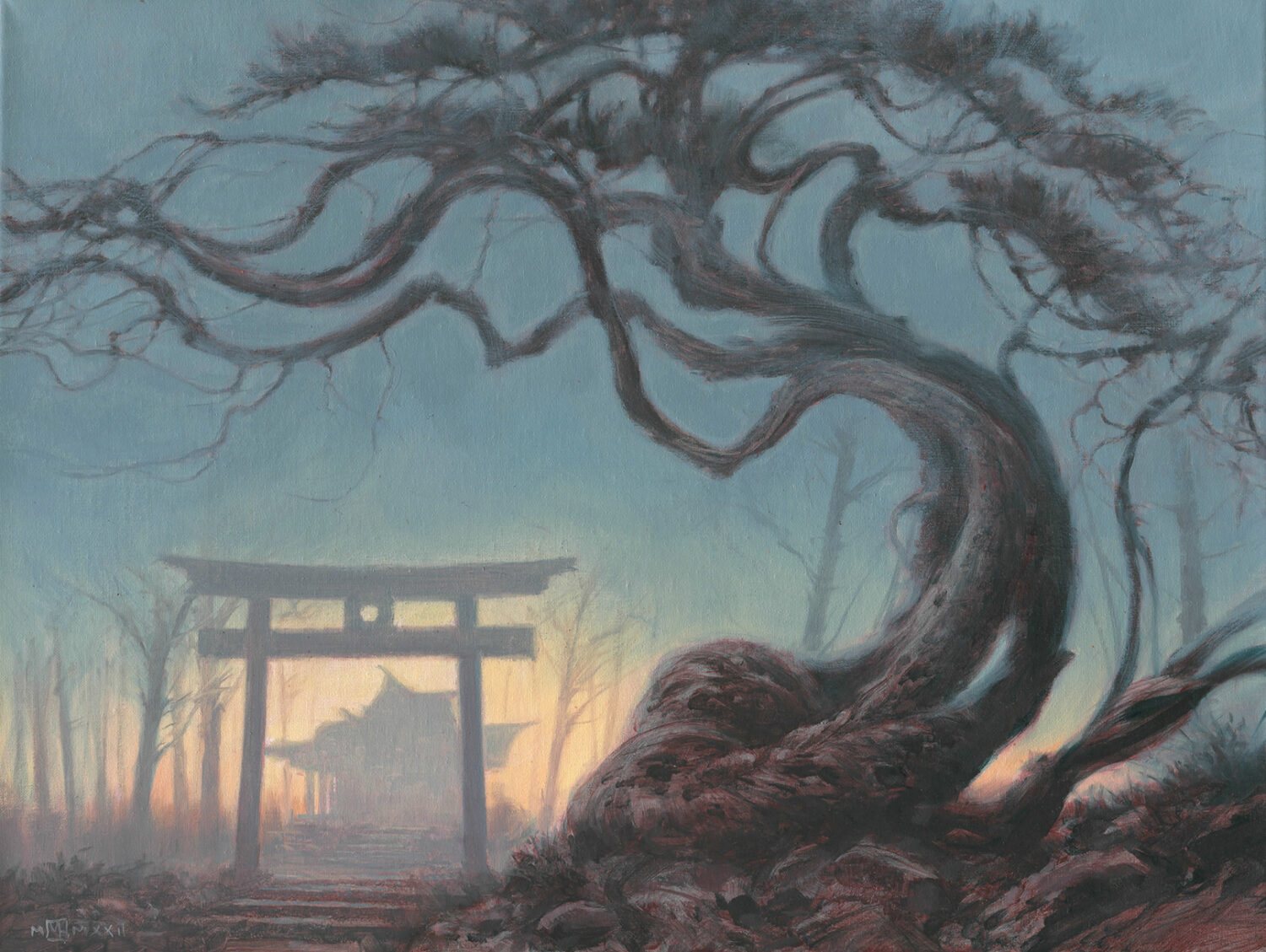 One of a series of personal paintings based on trees, this one with a Japanese theme. Torii is the name of the style of gate.