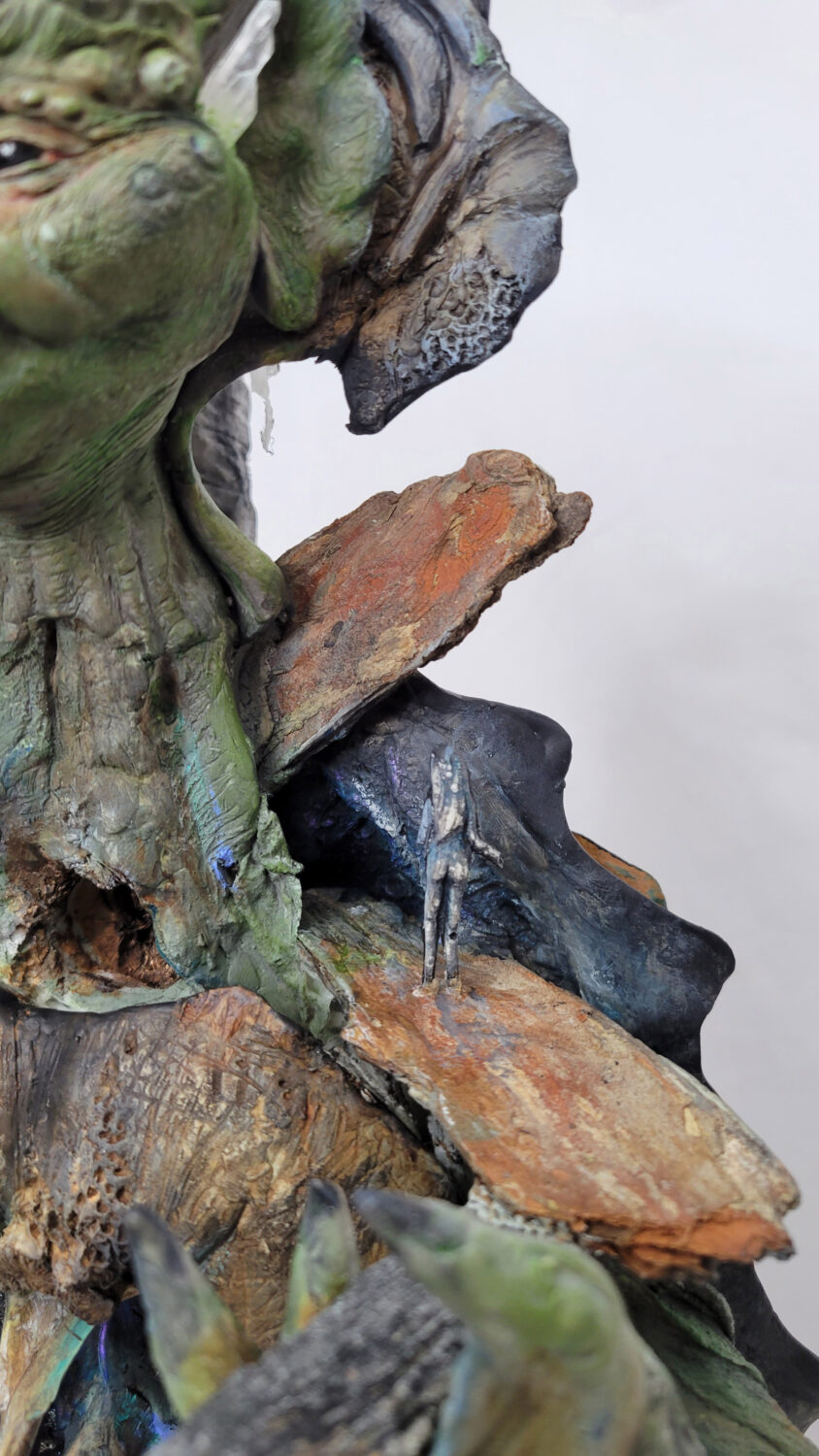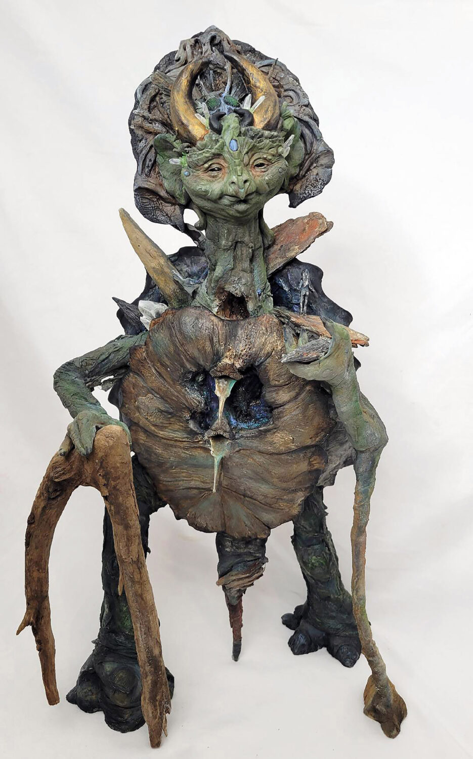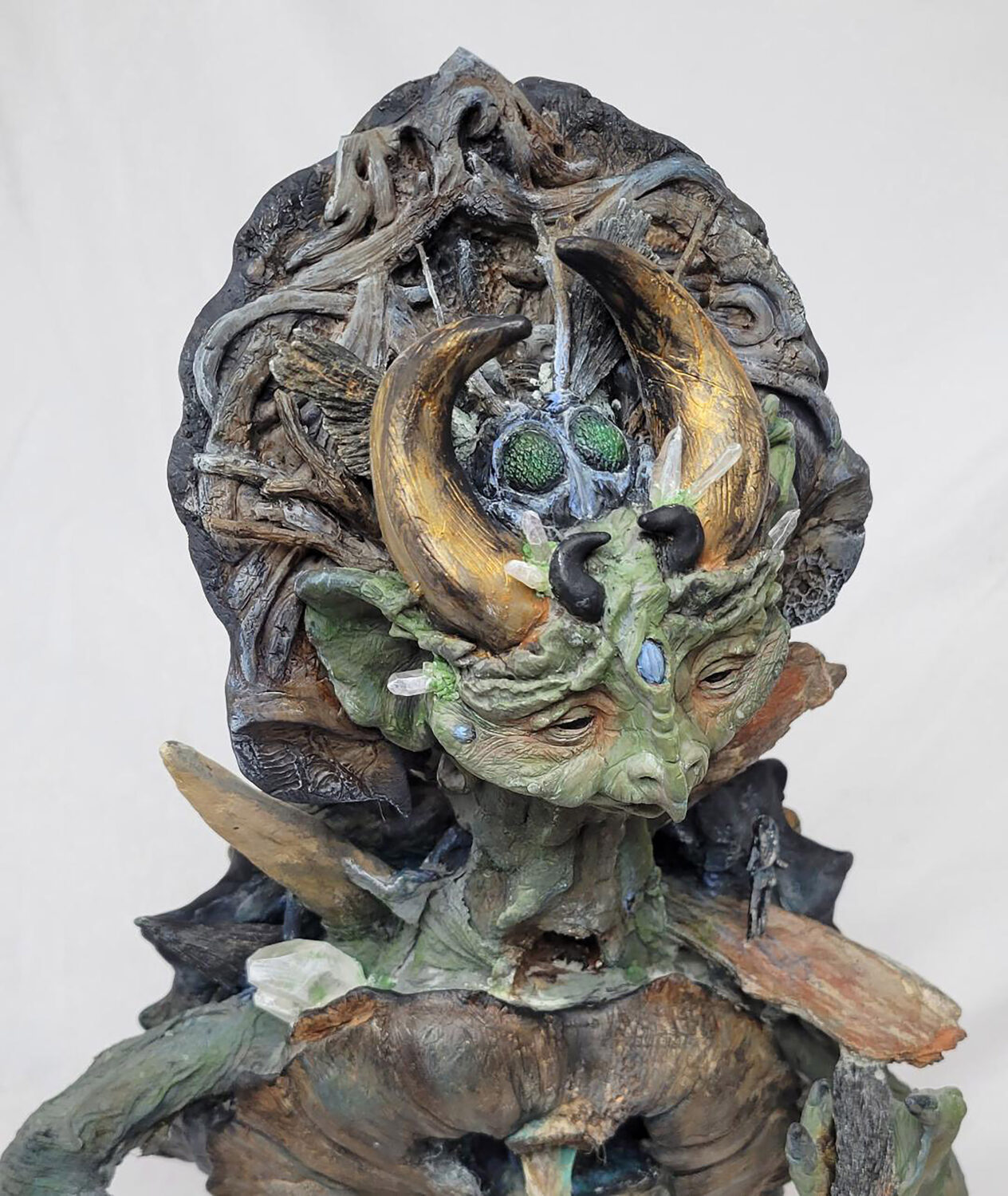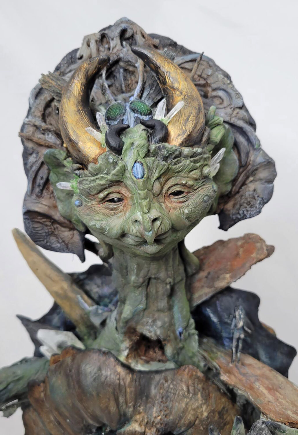 Mixed Media Sculpture - A Tortopian universe within The Broken PlanetPolymer Clay, Apoxie, Driftwood, Fabric, Crystals, Bones, other found items.