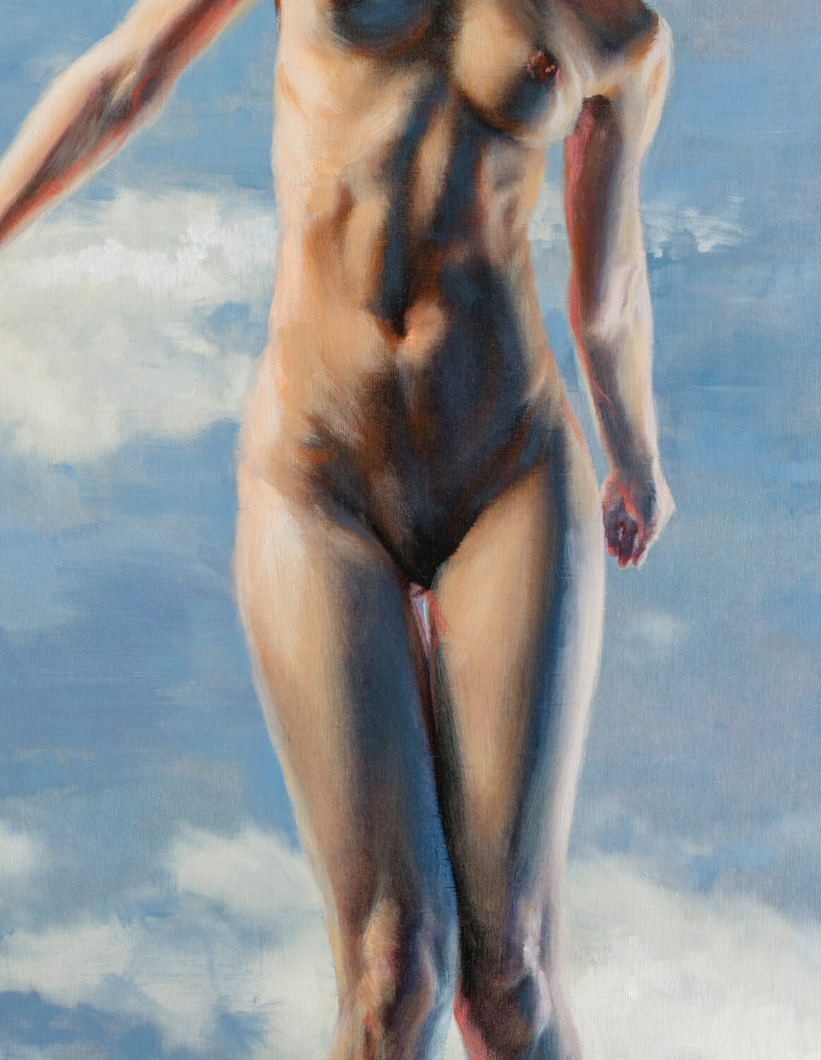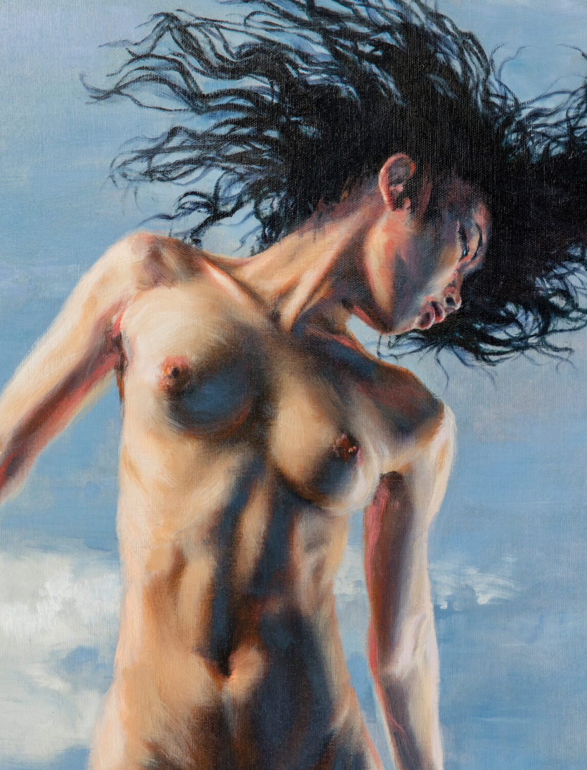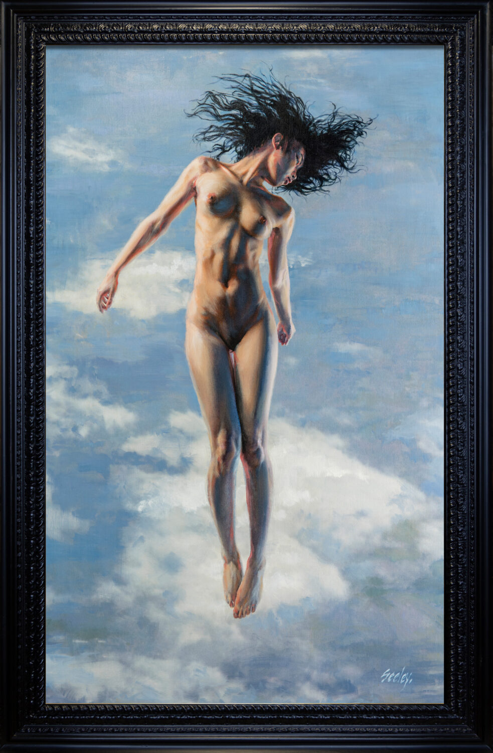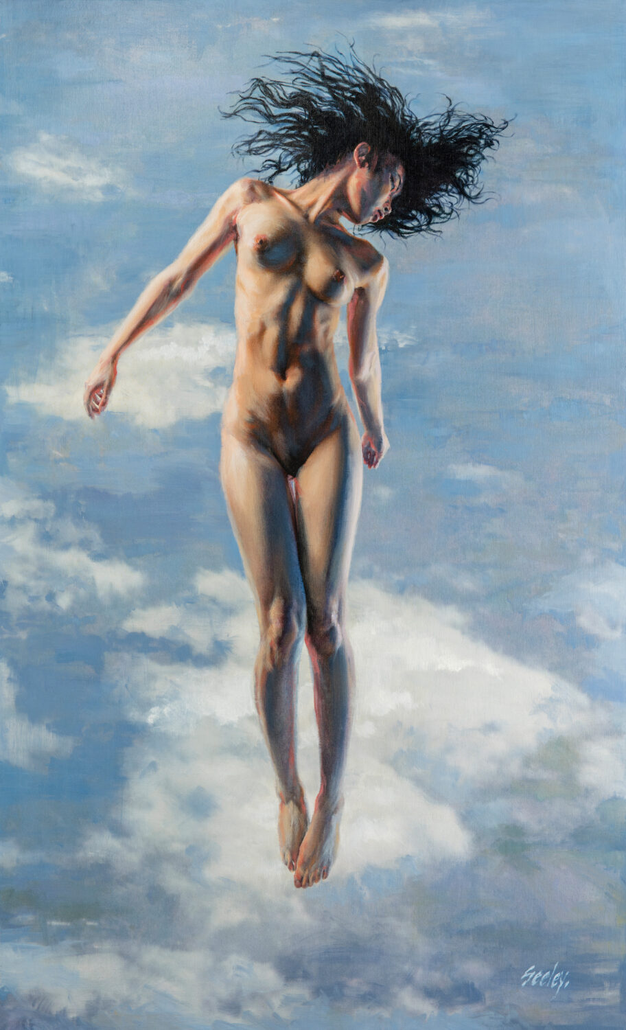 First in my "Transcendent" leaping nudes series, Transcendent Lynne was the beginning of my obsession. I love the feeling of weightlessness that come from these paintings. They were inspired by a photography series I developed while shooting models for other genre subjects. The painting was exhibited at the Inner Visions show at the Abend Gallery.