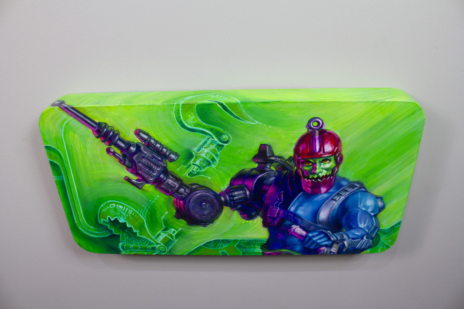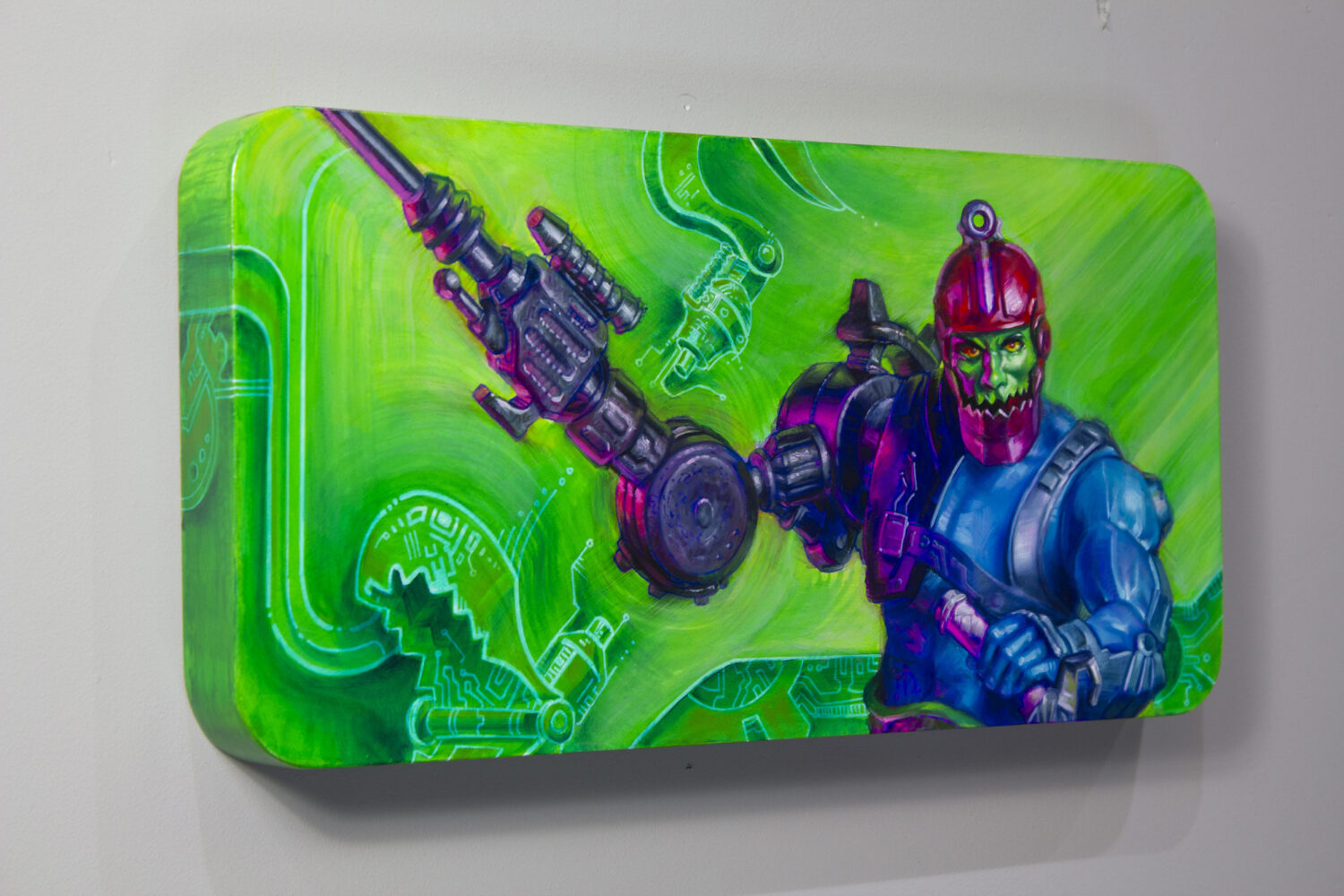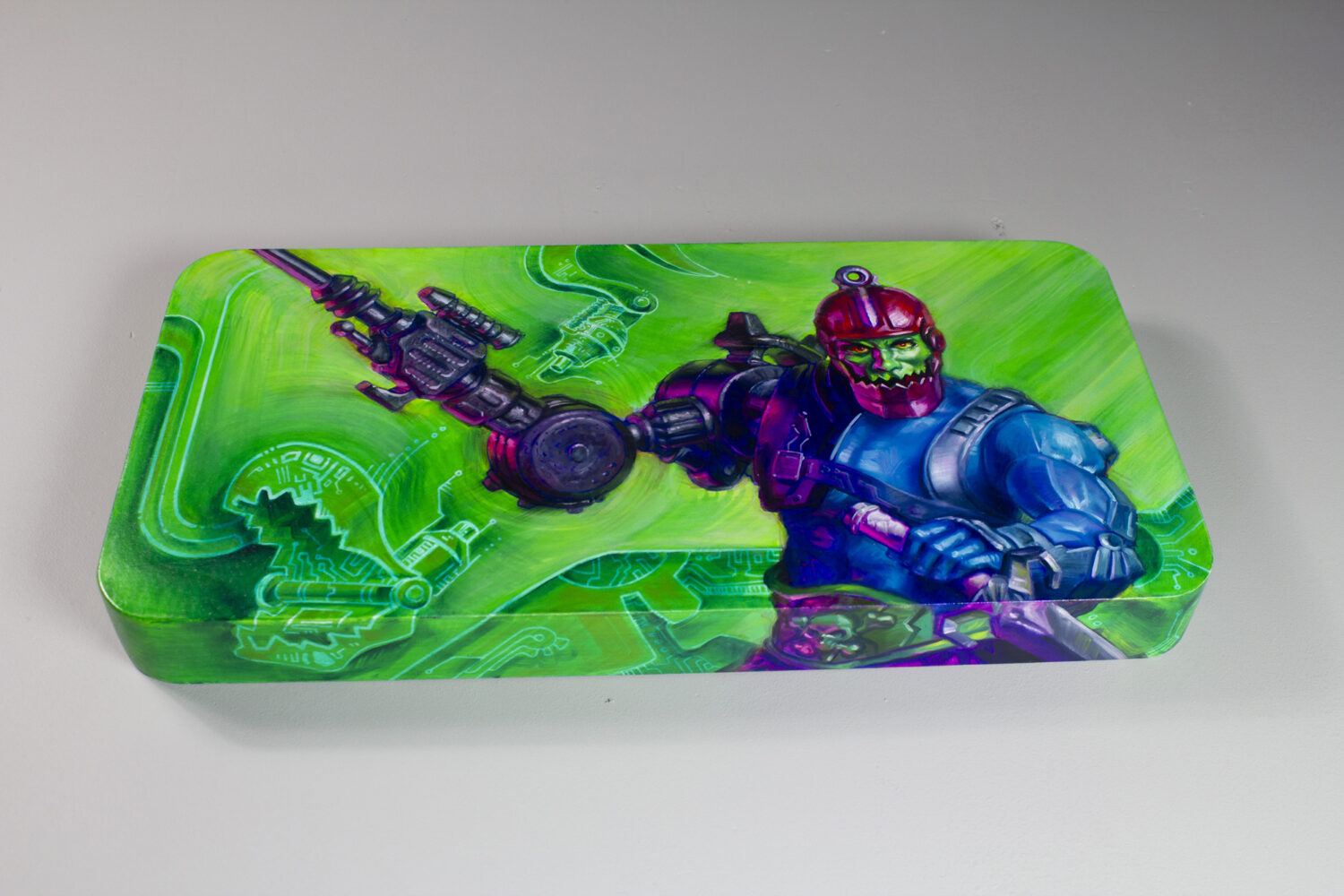 From my current on-again, off-again series, “The Secret Life of Puppets”. Trap-Jaw is a fun character to paint, a great blend of sci-fi and fantasy elements.A key aspect for me of these Masters of the Universe toys, is that they are one of the earliest links between my imagination and the physical world. I held a piece of some fantastic world in my own little hands.