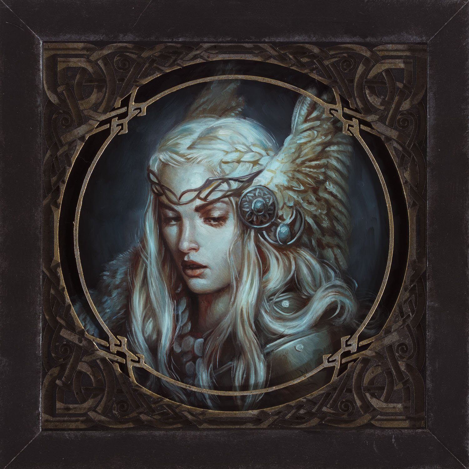 8 x 8 inches, oil on panel. Custom laser-cut frame.