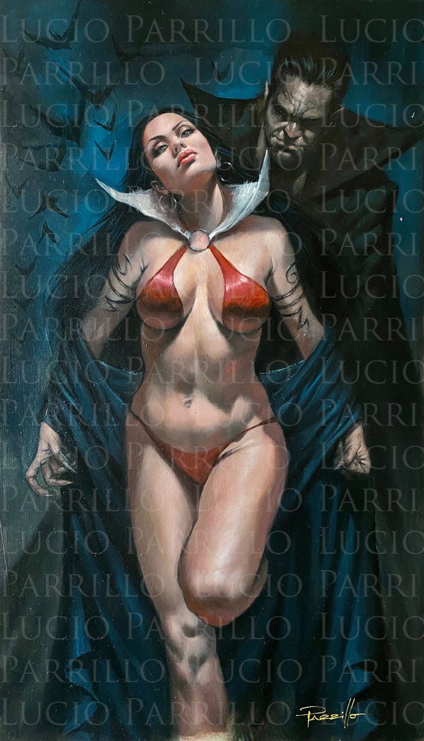 13.2 x 22 inches, oil on paper. Cover for not-yet-released Vampirella/Dracula comic