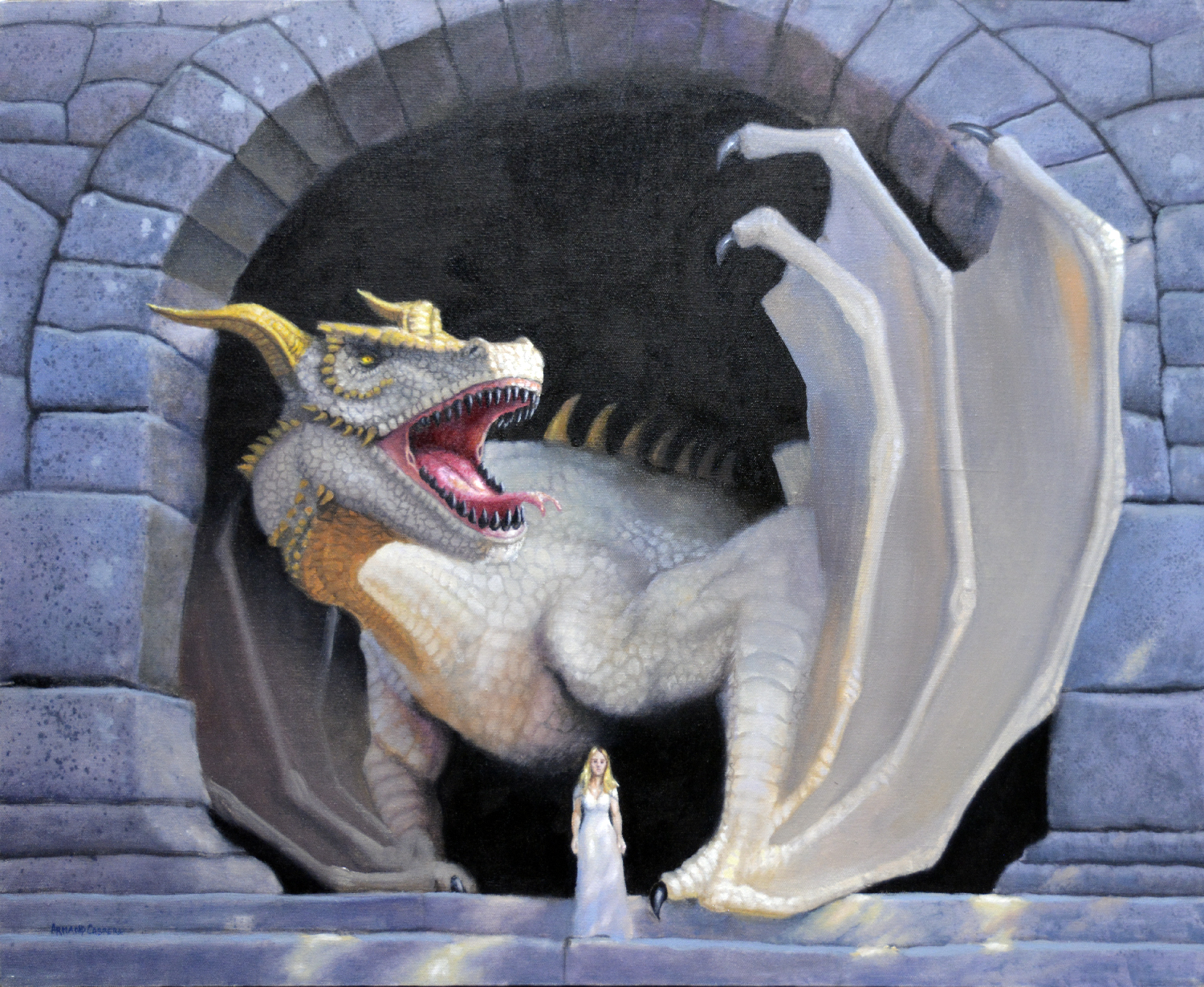 Unframed. A painting depicting Viserion and the Mother of Dragons