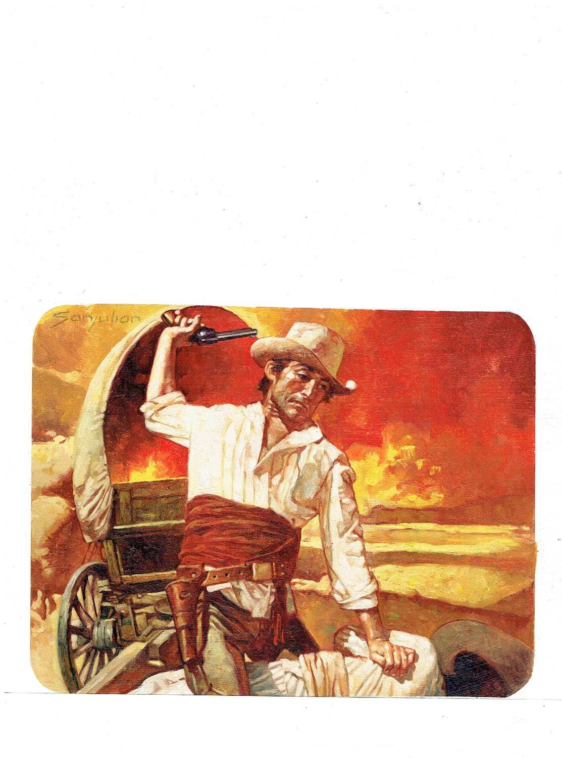 9 x 12 inches, oil on canvas. CA 1990s. Original Western paperback illustration for a novel by Bastei Lubbe.