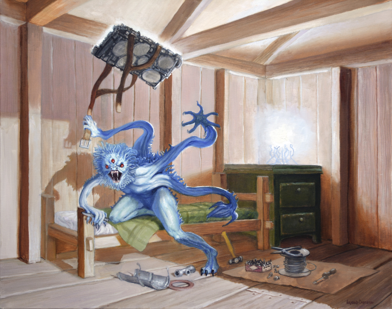 Unframed. The reveal scene from the John W. Campbell novella Who Goes There? I painted the alien as described in the story working alone on a means of escape.