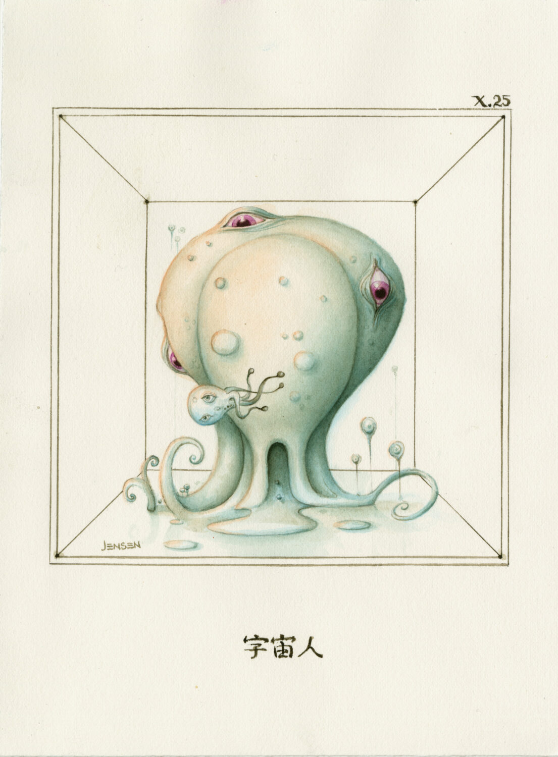 7.25 x 8.75 inches, mixed media on paper. Part of Bruce Jensen's ALIEN MENAGERIE series